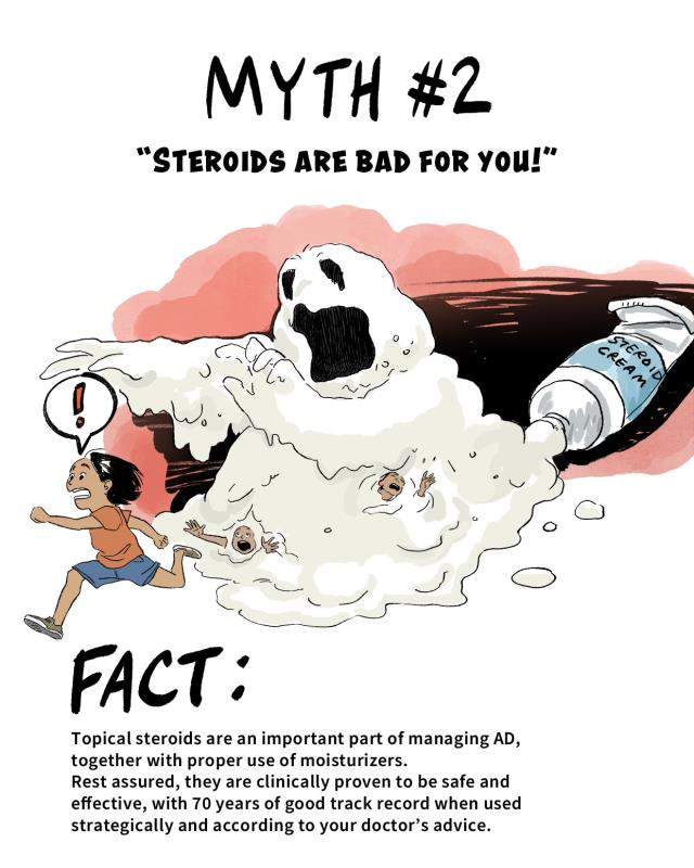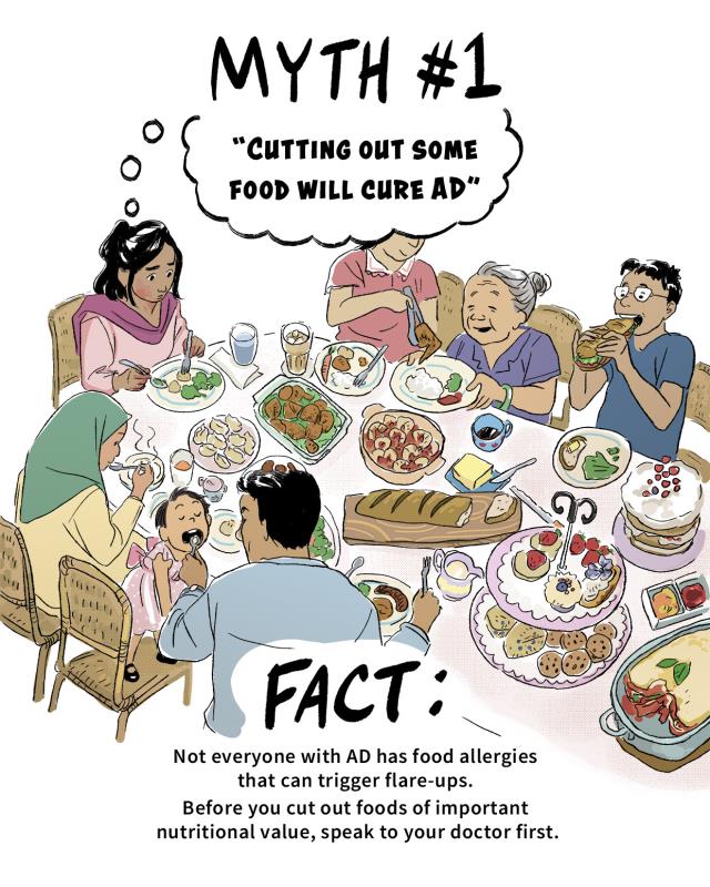 The #UncoverLife webcomics illustrate and debunk common myths about atopic dermatitis. (Art credit: Erica Eng / DermatologicaThe #UncoverLife webcomics illustrate and debunk common myths about atopic dermatitis. (Art credit: Erica Eng / Dermatological Society of Malaysia)