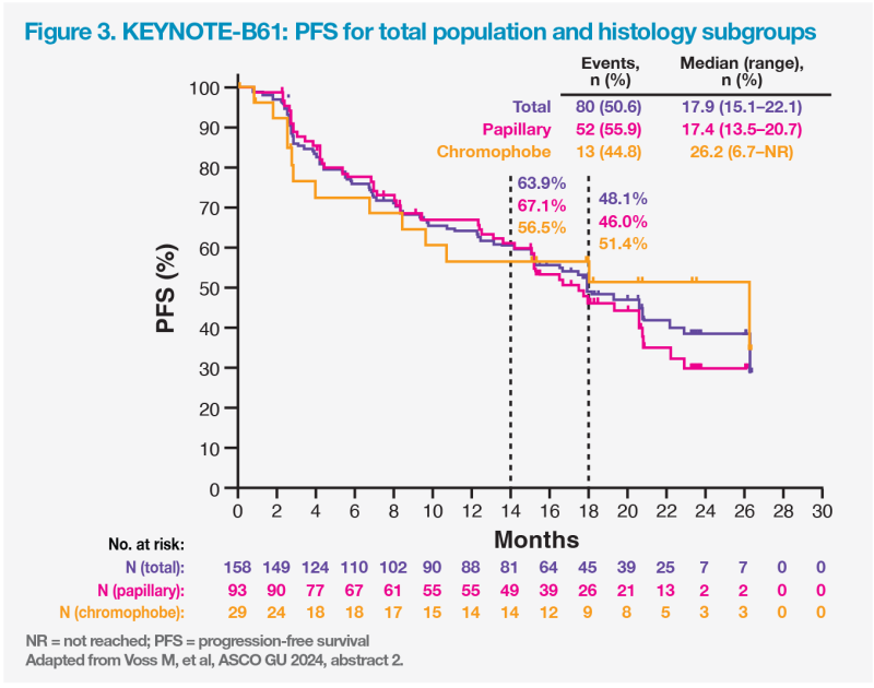 “Median PFS was 17.9 months [range, 15.1–22.1 months], which is com­parable to the PFS observed for this reg­imen [23.9 months] in the CLEAR study,” highlighted Grünwald. (Figure 3) [Voss M, et al, ASCO GU 2024, abstract 2; N Engl J Med 2021;384:1289-1300]