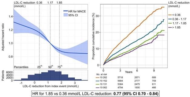 reduction (0.36 mmol/L, 25th percentile) had lower hazard ratios (HR) for all