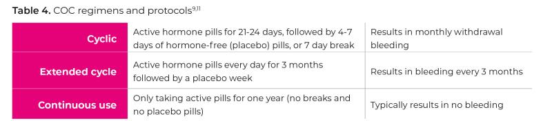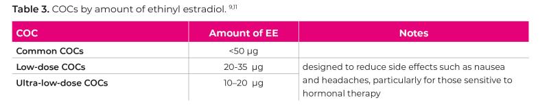The ethinyl estradiol (EE) dose in COCs varies (table 3).