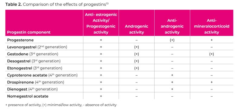 the specific progestin, as well as the estrogen dose. Progestins differ in