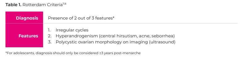 discussed in detail. Diagnosis follows the Rotterdam criteria requiring at
