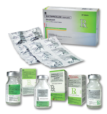 - Ampicillin sodium/Sulbactam sodium (Silgram) is an injectable antibacterial combination consisting of the semisynthetic antibiotic ampicillin sodium and the beta-lactamase inhibitor sulbactam sodium2.