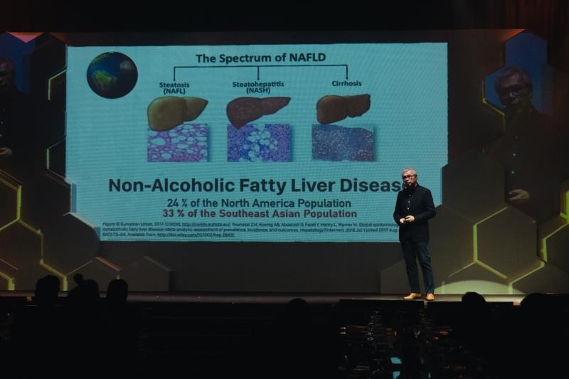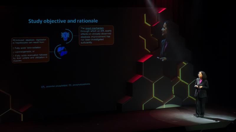 Prof Sollano also explored key preclinical evidence showing EPLs’ therapeutic effects on lipid droplet (LD) stabilization and reduction, a process central to addressing MAFLD pathology in parallel to Prof Luciani’s earlier discussion. Studies on differentiated HepaRG cells, which mimic human liver cells, demonstrated EPLs' ability to manage oxidative stress and reduce the size of lipid droplets, which are triglyceride-rich organelles whose accumulation is a hallmark of MAFLD.