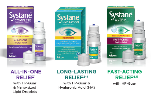 HYDRATION and Systane® COMPLETE Lubricant Eye Drops, each available in a