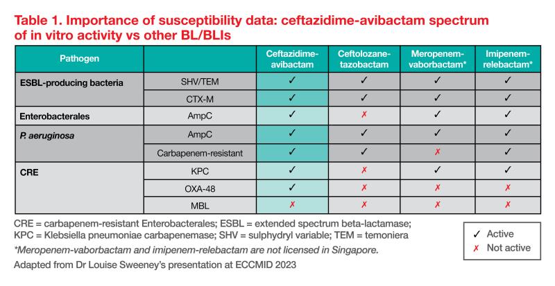 Susceptibility testing is one of the key roles of a microbiologist. “There is a lot of heterogeneity in resistance mechanisms, and treatments should be selected accordingly (Table 1). We cannot use a BL/BLI empirically without considering the resistance mechanism,” cautioned Sweeney.