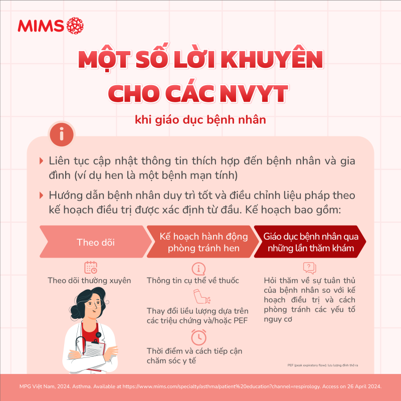 Sau đây là một số lời khuyên dành cho NVYT trong việc giáo dục bệnh nhân hen